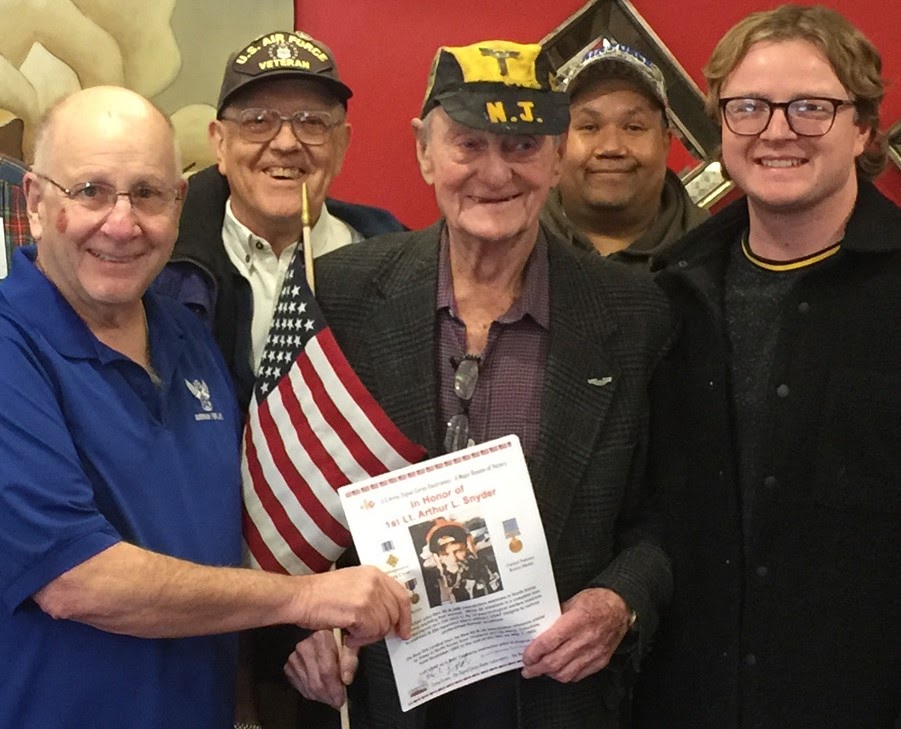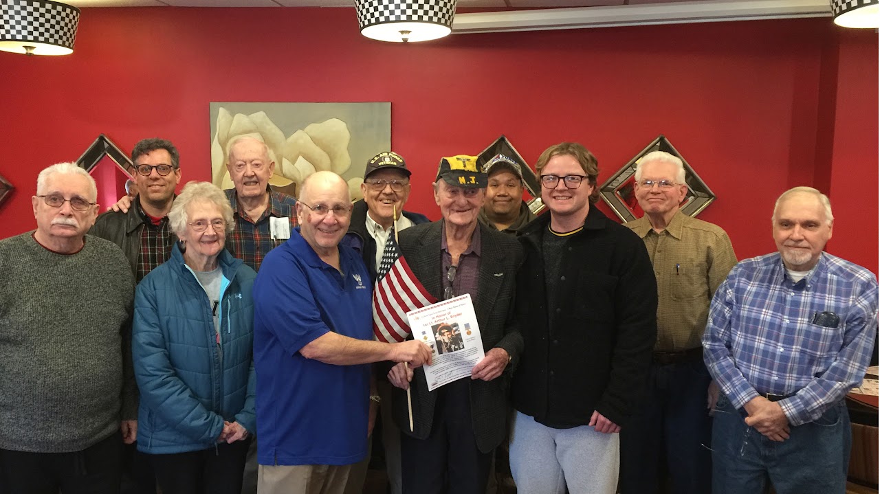 Long time Chapter 195 member Arthur Snyder gave a presentation about how he dropped leaflets from a CIA black B-29 that resulted in a MIG pilot defecting to the US during the Korean War. Art was awarded the Distinguished Flying Cross, two Air Medals, and the United Nations Korea Medal along with his other decorations for his service.